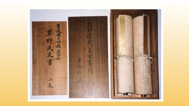 草野家に伝わる古文書で、足利尊氏の書簡や二代将軍足利義詮による直義追討の書簡なども含まれており歴史的にも貴重な資料です。