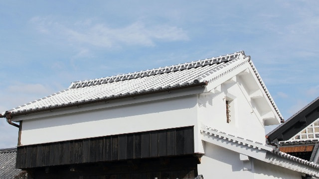一方、天保2年(1831年)増築の蔵は対称的に白漆喰塗りで仕上げられ国宝姫路城と同じ仕様とのことです。黒と白の漆喰の違いをお楽しみください。